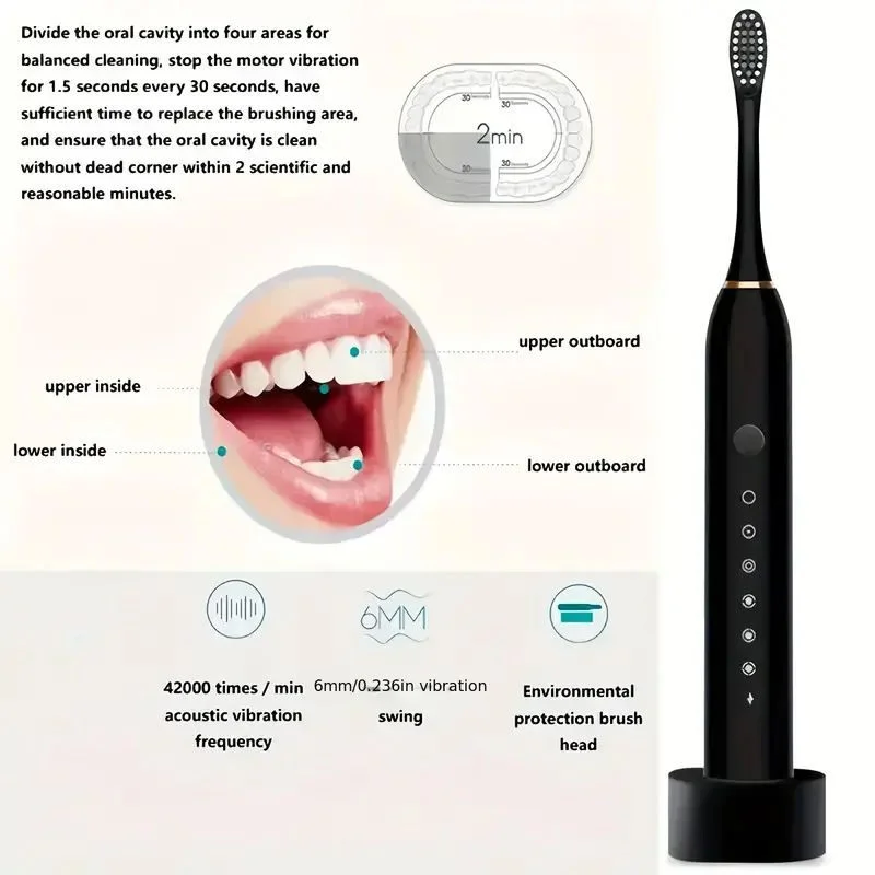 Upgrade your oral care routine with the X3 Sonic Electric Toothbrush – a powerful rechargeable toothbrush designed for deep cleaning, teeth whitening, and gentle gum care. Powered by advanced sonic technology, it delivers up to 40,000 vibrations per minute, effectively removing plaque and stains for a healthier, brighter smile. With 5 smart brushing modes, you can customize your brushing experience for daily cleaning, whitening, polishing, or sensitive care. Its USB fast charging and long-lasting battery make it perfect for home use and travel.